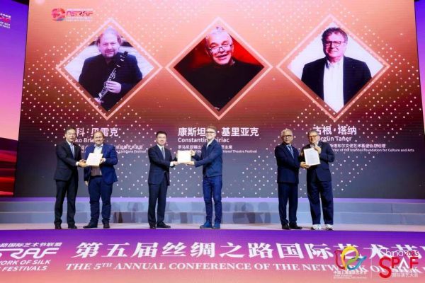 本届年会特设了“丝绸之路国际艺术节联盟卓越贡献奖”,授予三位在国际艺术交流、机制构建与项目推动方面有卓越贡献的资深人士,分别是斯洛文尼亚卢布尔雅那艺术节总经理达科·贝雷克、罗马尼亚锡比乌国际戏剧节主席康斯坦丁·基里亚克、土耳其伊斯坦布尔文化艺术基金会总经理古根·塔纳。联盟希望通过此类荣誉激励更多力量参与丝路文化建设。