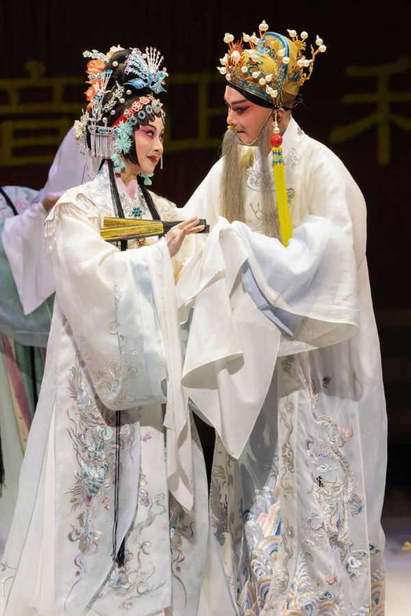 《太和正音——故宫昆曲萃集》是一项大胆而浩大的工程。它通过对故宫珍藏的3200余种6467部11498册清宫戏本的系统梳理,精选中秋、重阳节令为主题的内容进行创排,被誉为“文物活化与非遗传承的创新模式”。此番亮相艺术节的是第一季,以“中秋”为主题。《江州送酒》《中秋奏凯》《长生殿·重圆》三折戏“花”“雅”兼备,文戏与武戏各擅胜场,全方位展示了古老昆曲的艺术特色。