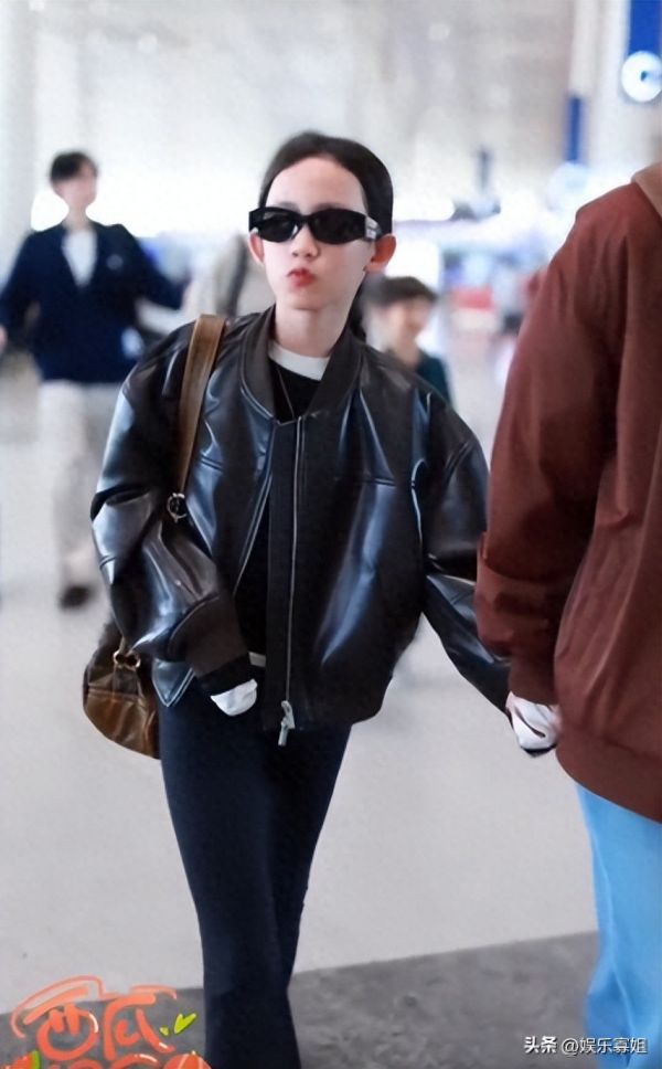 身着皮衣亮相,黄磊小女儿现身机场被赞星味十足