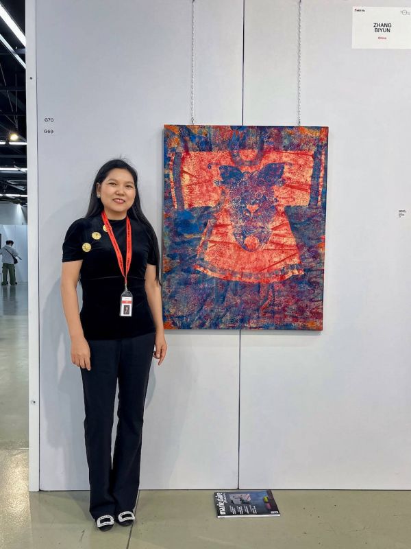 张碧云教授的作品从众多国际艺术家中脱颖而出,其创作融合中国大写意绘画的精神内涵与当代视觉语言,呼应了本届双年展对文化对话与美学共融的探讨。两幅参展作品以东方服饰与色彩为媒介,构建出历史与当代、东方与西方之间的艺术对话,更通过独特的东方视角,为全球观众理解“二元与统一”的展览主题提供了崭新的美学维度,展现出中国绘画在全球化语境下的创新表达。