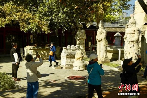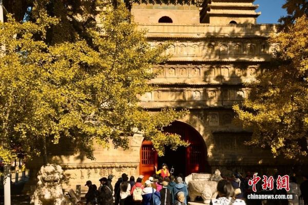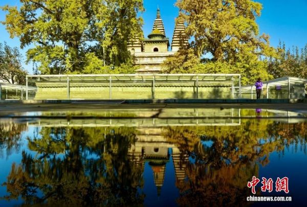 10月21日,市民参观五塔寺。随着气温下降,北京五塔寺内的银杏树树叶转变为黄色,秋意渐浓。中新社记者 易海菲 摄