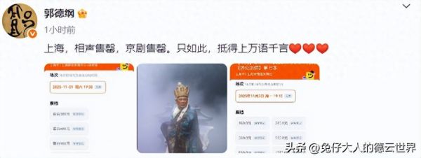 德云社郭德纲发文,晒票房截图,上海两场演出,京剧、相声全售罄