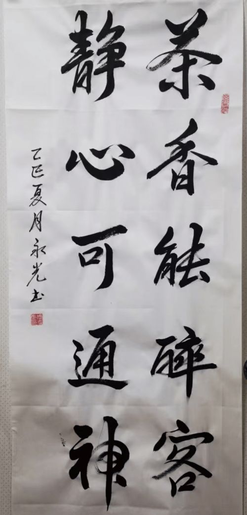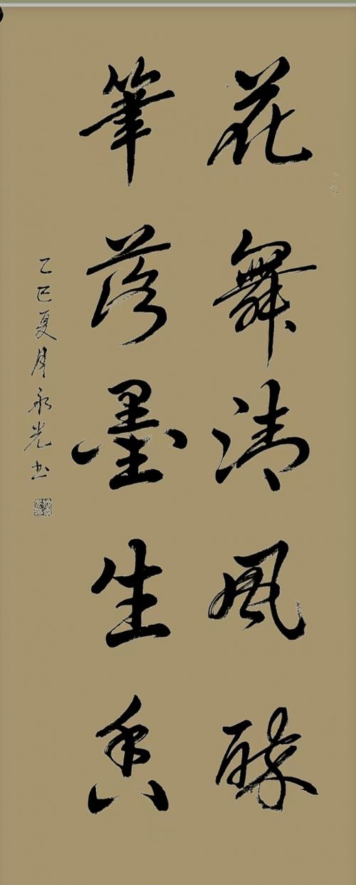 优美的韵律意竟深远、结体内收外放别具一格、遒劲俊雅的笔画、浓淡适宜的墨法、布局严谨的章法、其精湛技艺炉火纯青,作品多次在国内参展荣获金、银奖同时被多部典藏收录和多家报刊杂志选用、刊登,尤以行草更有较深的造诣。