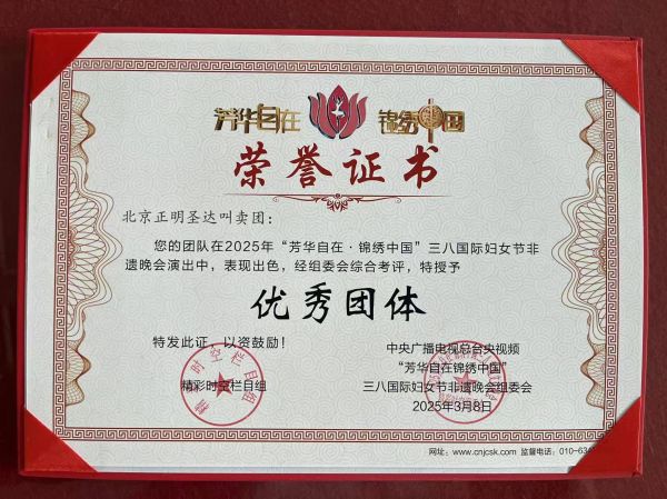 随着声声吆喝在剧场回荡,郑光荣用他饱含深情的表演证明:非遗文化不是博物馆里的标本,而是活在我们生活中的艺术。这份荣誉证书,不仅记录着一位艺术工作者的成就,更见证着古老吆喝艺术在新时代的华丽蜕变。让我们期待更多文化使者,用艺术讲好中国故事,让这些珍贵的市井之声永远回荡在中华文化的长河中。