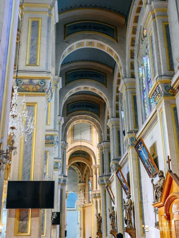 教堂内的拱顶长廊高大宽敞,立柱整齐排列,抬头仰望,能感受到建筑的精妙与宏伟 。