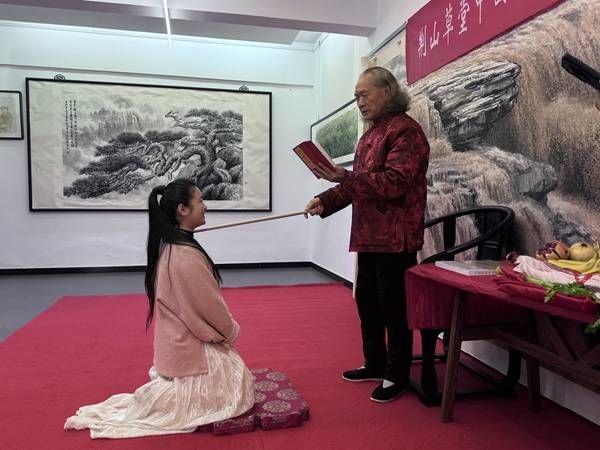 2025年10月25日,恰逢农历九月初五与台湾光复纪念日,双节同庆的良辰吉日里,著名书画艺术家、河北省级非物质文化遗产烙画代表性传承人艾秀琪先生,在荆山草堂庄重举行收徒仪式,正式接纳浙江杭州的吴芸婷女士为门下弟子,为这项古老技艺注入新鲜血液 。