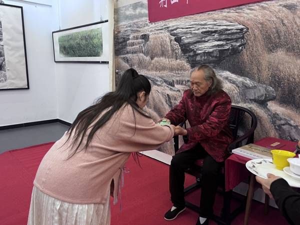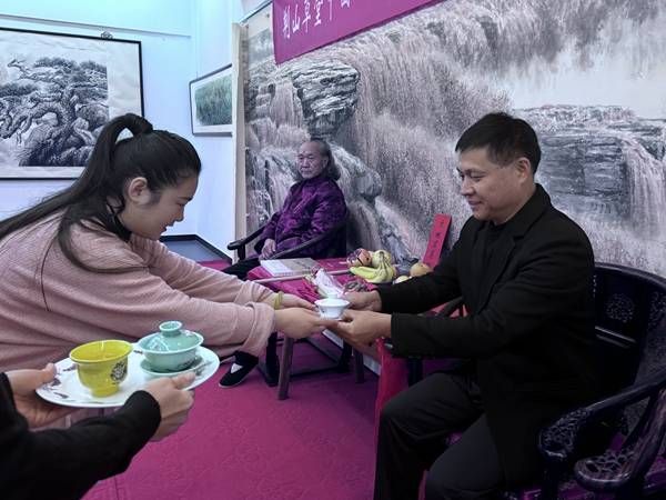 仪式核心环节,艾秀琪先生接过拜师帖后,郑重回赠回徒帖与一套自己编写的烙画教程,并现场训话。他叮嘱弟子:“烙画讲究‘心手合一、火候精准’,既要守住老规矩,也要在传承中注重创新发展。”随后,吴芸婷依次向师傅艾秀琪、证师刘振山敬上热茶,两位长辈接过茶盏,对新晋弟子寄予厚望 。