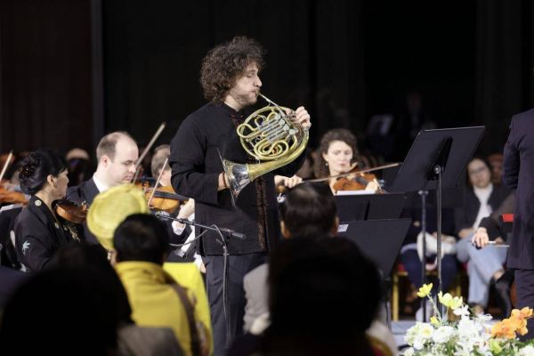 音乐会在戈登·雅各布《圆号协奏曲》的中国首演中正式启幕。莫扎特国际音乐大赛冠军、蒙特卡洛国家歌剧院圆号首席安德烈亚·臣赛礼的演奏,将圆号的温暖音色与地中海的浪漫风情完美融合。在接受媒体采访时,这位意大利音乐家难掩激动:"杭州的能量很棒,这座城市很美,人们很友好。能与浙江音乐学院的学子们同台演奏,分享我多年积累的经验,这是一次美妙的体验。"