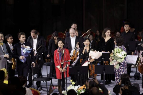 当晚,见证了无数艺术盛宴的OMNI音乐节广场再次迎来高光时刻。著名华裔小提琴家、摩纳哥首席演奏家乐团艺术总监张樟女士在致辞时动情地说:"作为生活在摩纳哥的中国音乐家,能够带着欧洲的同事和朋友回到祖国演出,用音乐巩固两国友谊,这次巡演对我而言具有特殊意义。"