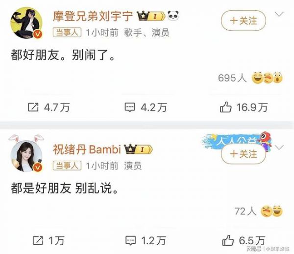 很快,刘宇宁和祝绪丹两人相继澄清了绯闻。