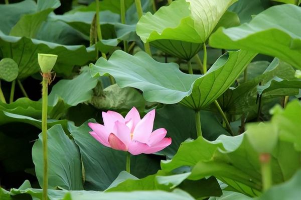 一场细雨过后,荷叶在微风中翻动,石榴花像火焰一样在湿润的环境中愈发鲜艳。纤细的手拨动着清池泉水,水珠溅落在荷叶上,如同珍珠般晶莹剔透,偶尔碎开,又在瞬间聚成圆形。