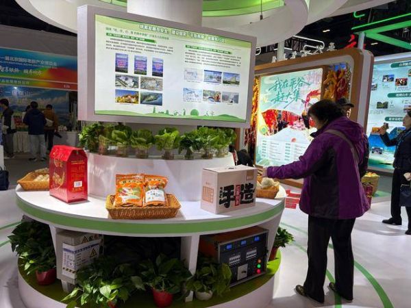 最受关注的当数土特产。展区里的佛见喜梨、冰糖葫芦、冻红薯、水培生菜、麻核桃等土特产,吸引了不少参观者围观和购买。