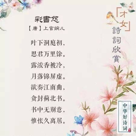 上官婉儿十四岁时因聪慧善文为武则天重用,掌管宫中制诰多年,有「巾帼宰相」之名,才华诗文不让须眉男子。