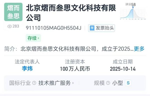 有意思的是,此次联合主办方之一北京熠而叁思文化科技有限公司,背后大股东正是曾经银河酷娱的创始人李炜,而他也被外界认为是赵露思的伯乐,早在2016年就签约赵露思。