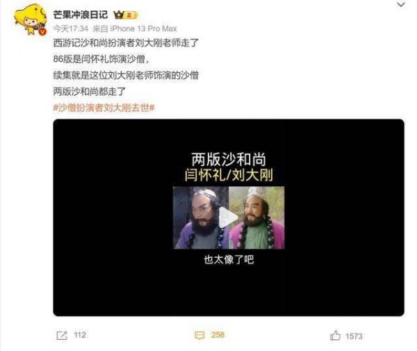 11月7日,戏曲演员@戏曲刘冰 发文:“著名表演艺术家《西游记》沙僧扮演者刘大刚先生,于2025年11月3日在京病逝,享年78岁。”