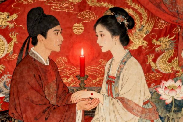 拜堂仪式顺利进行,苏文轩看着身边盖着红盖头的新娘,心里充满了幸福感。等到仪式结束,新娘被送入洞房,苏文轩应酬完宾客,才急匆匆地赶回洞房。他推开房门,看到新娘正坐在床边,红色的盖头垂在肩上,身姿窈窕,正是自己朝思暮想的人。