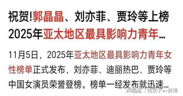 杨幂凭《生万物》入选2025亚太最具影响力青年女性