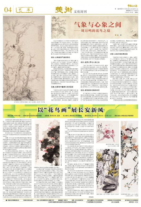 在当代中国画坛中,刘万鸣艺术的独特性在于他始终保持着一种“内在生长”的张力。他从传统花鸟画的笔墨系统出发,转而在观念、结构与绘画语言层面展开探索。本次在山东美术馆举办的“与物为春——刘万鸣艺术展”,既是一场绘画语言的自我回望,也是一种艺术精神的精进之旅。展览作品勾勒出一条清晰的艺术向度——即以传统为体、以心境为旨、以探索为路的完整艺术创作谱系,我们循此观看,可以品读刘万鸣花鸟画的艺术之路。