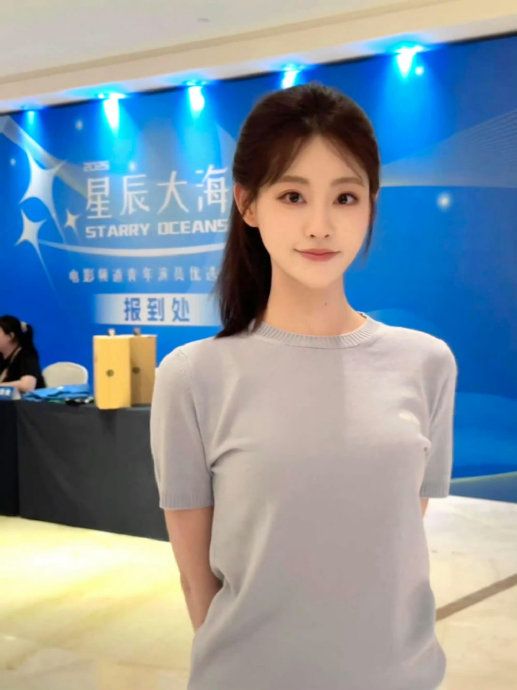 祝绪丹蓝T高马尾造型清爽温柔,被赞白月光学姐