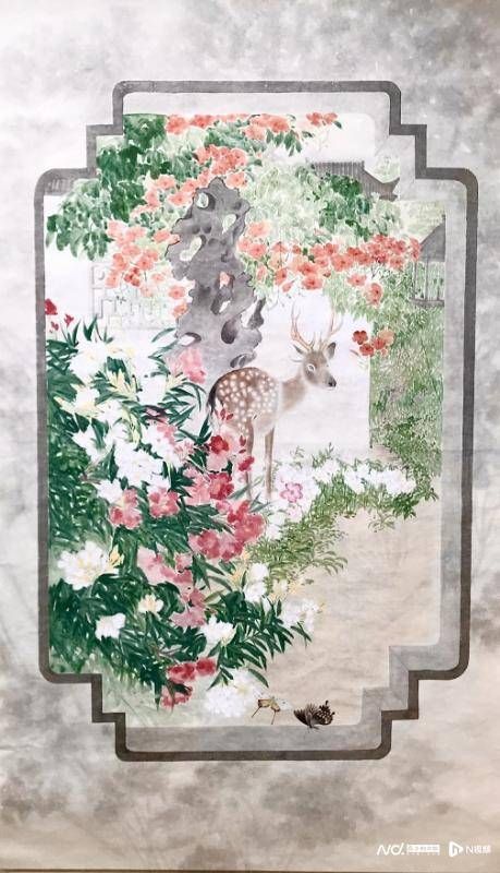 展览以“集古出新”为主题,精准概括了邹训精先生的艺术追求。他深植于中国工笔画深厚的传统土壤,对宋元经典的笔法、构图与意境有着深刻的理解和把握。在展览现场,观众可以欣赏到其笔下的工笔花鸟:花卉形态饱满,设色典雅沉静,禽鸟灵动鲜活,尽显自然生命的本真与和谐。