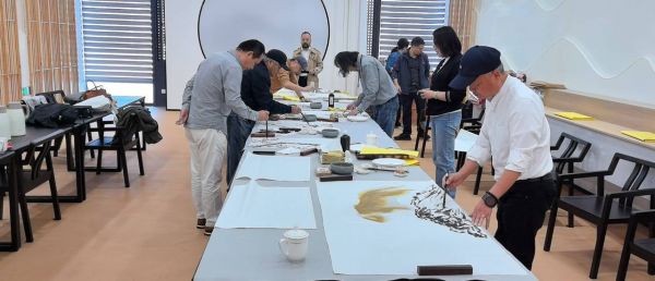 八十载栉风沐雨,民进初心如磐;三地文脉相连,翰墨薪火相传。2025年11月16日,恰逢中国民主促进会成立80周年之际,杭州上城、滨江与嘉兴海盐三地民进开明画院的艺术家们齐聚海盐李子侯书画院,以笔为媒、以墨传情,一场兼具艺术质感与家国情怀的采风交流笔会温情启幕。杭州市政协原副主席、民进杭州市十一、十二届主委赵光育、上城民进开明画院顾问萧鸣、上城民进开明画院常务副院长赵茂祥、上城民进开明画院副院长王丽芳、滨江民进开明艺术院院长莫国群、滨江民进开明艺术院副院长傅舟波、海盐民进基层委主委刘志海、海盐市民进开明画院院长程雪峰等相关艺术家共同见证这场文化盛事。