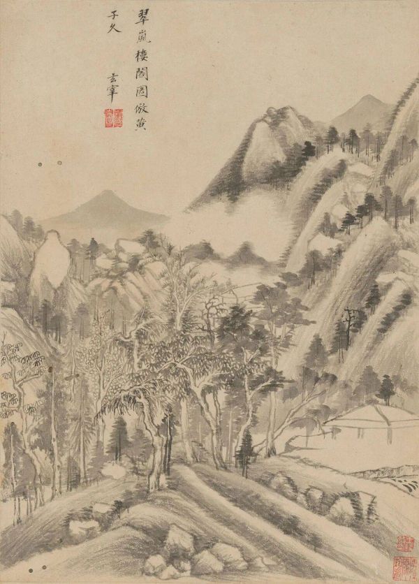 作云林画,须用侧笔,有轻有重,不得用圆笔,其佳处在笔法秀峭耳。宋人院体皆用圆皴,北苑独稍纵,故为一小变。倪云林、黄子久、王叔明皆从北苑起祖,故皆有侧笔,云林其尤著者也。