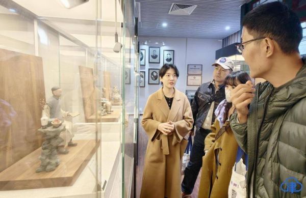 采访团一行走进古文化街,在“乐器张”里数十张古琴、古筝、琵琶错落有致地陈列着,每件乐器都散发着温润的光泽。游客们不仅可以驻足聆听,更可以亲手拨动琴弦,感受从指尖传至心尖的奇妙瞬间。在“泥人张世家美术馆”,采访团成员上手体验制作技艺,长长的木案前,专业老师的指导着大家雕琢着手中的泥团,感受着传统艺术的无限魅力。在“津港印象”展馆展厅内,成员们置身负一层的5D动感影院中,漕运帆影与集装箱巨轮交叠驶过,历史的风浪与时代的潮音在身侧共振。