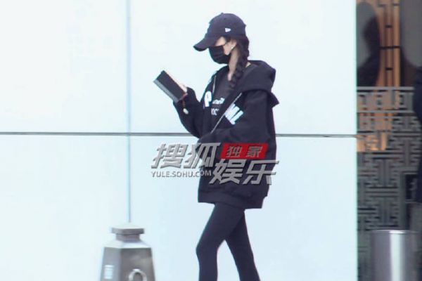 杨幂低调现身香港高铁站,卫衣棒球帽造型赴港探女