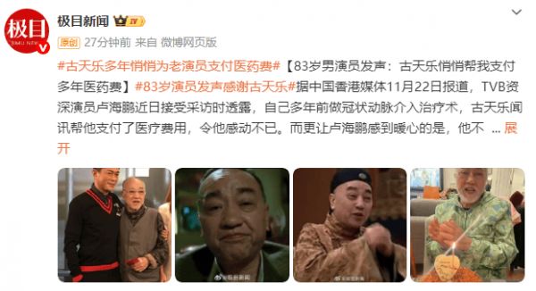83岁TVB资深演员卢海鹏致谢古天乐:他默默为我支付了多年医药费