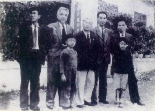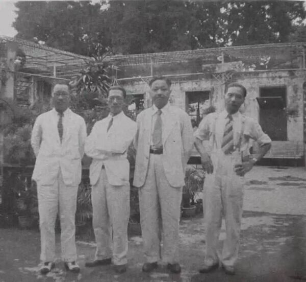 (左二王道源、中间高剑父、右二阳太阳、右一关山月)