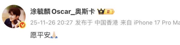 愿香港火灾受灾同胞平安!欧阳震华、奥斯卡等明星纷纷发文祈福