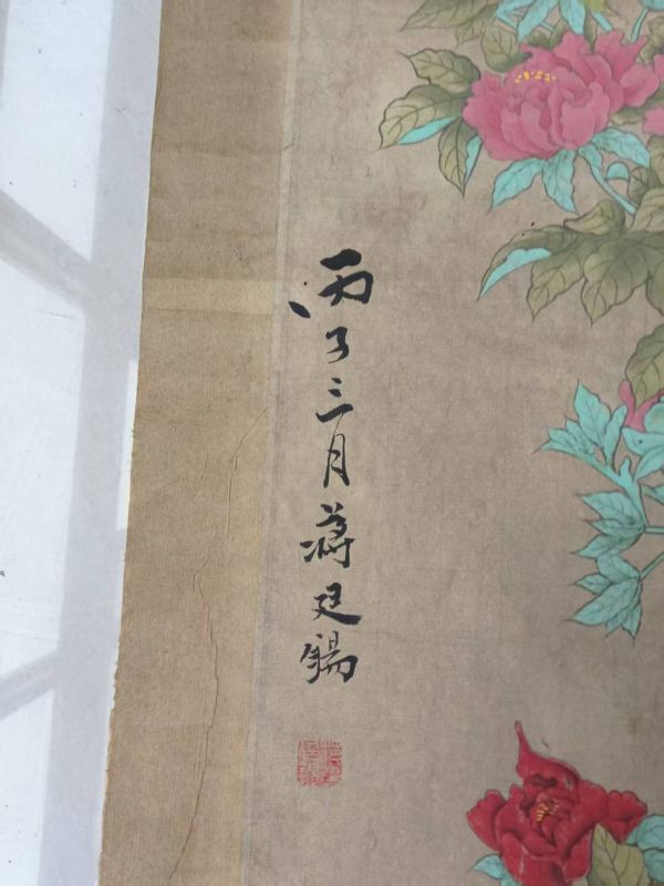 当一幅敷彩艳丽的《孔雀傲立图》在案头舒展,绢本上的朱红牡丹与金翠孔雀,既晕染着清代宫廷的华贵气韵,也藏着蒋廷锡“词臣画家”的文人底色。这幅署款“丙子二月蒋廷锡”的设色花鸟轴,以孔雀傲立的姿态为魂、以牡丹缠枝为韵,成为清代“蒋派”花鸟画“工写相济、中西交融”的典范之作。