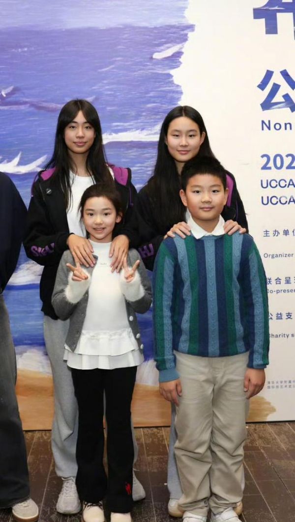 在艺术展现场,佟大为关悦一家五口,也与董璇小酒窝来了一个开心大合照。合照中,佟大为的三个孩子尤为瞩目,大女儿与二女儿与爸爸妈妈一般高了,甚至大女儿比妈妈关悦还要高。