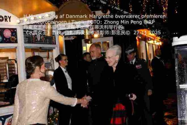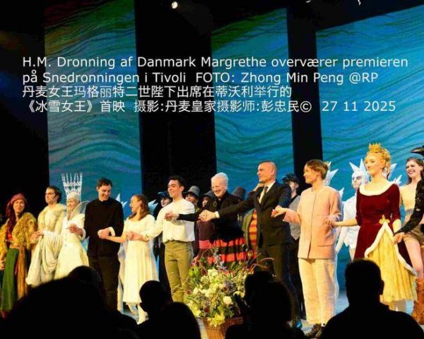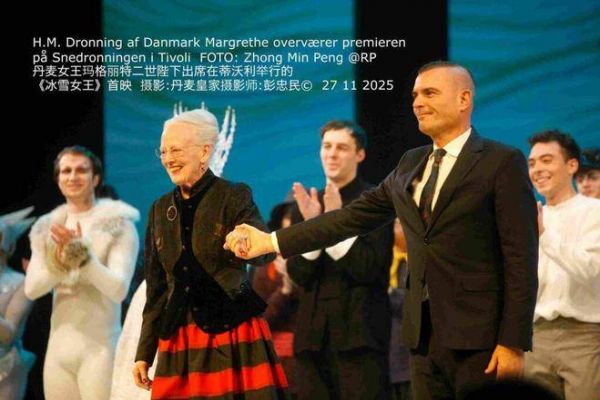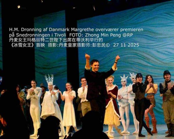 本网《丹麦皇家》杂志2025年11月27日哥本哈根市讯(丹麦皇家记者:彭忠民;特约记者 :王瞻远,廖子淇)2025年11月27日,丹麦玛格丽特二世女王在哥本哈根蒂沃利音乐厅出席童话剧《冰雪女王》首演。