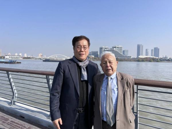 诗人谢冕与赵丽宏合影。(文汇报记者 许旸 摄)