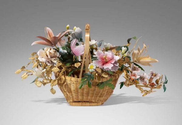 朱炳仁之子、国家级非物质文化遗产项目铜雕技艺代表性传承人朱军岷,作为铜雕技艺的新一代传承人,将传统技艺与现代科技结合,在“熔铜”艺术基础上进一步创新了熔铜禅画、熔铜清供、琅彩铜画等艺术表现形式。他此次捐赠的《连年如意》《繁花似锦》《蕉石鹤寿》《万全如意》四件作品,均以中国古代传统吉祥题材展开创作,在材质、造型、颜色处理方面匠心独运,实现了古典意蕴与当代审美的交融。