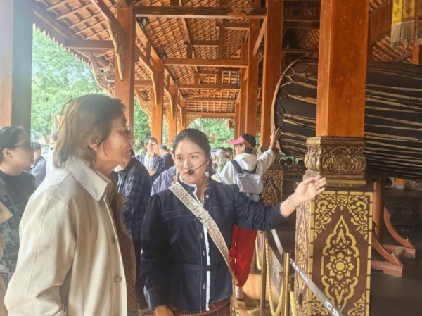 总佛寺的金顶在阳光下熠熠生辉,王松步入寺内,即刻感受到佛教文化与傣族建筑艺术的完美契合。雕梁画栋间透着精巧,佛像庄严中透着祥和,空气中弥漫着宁静气息。他注意到,寺庙在坚守宗教庄严性的前提下,合理划分游览区域,讲解员以通俗语言解读佛教文化与傣族民俗的深层关联,让不同文化背景的游客都能领略其中精髓。游客们有序参观,或静心祈福,或聆听解说,这种“尊重传统、开放包容”的文旅模式,既守护了宗教文化的核心价值,又让傣族多元文化通过旅游场景有效传播,实现了文化保护与旅游发展的和谐共生。