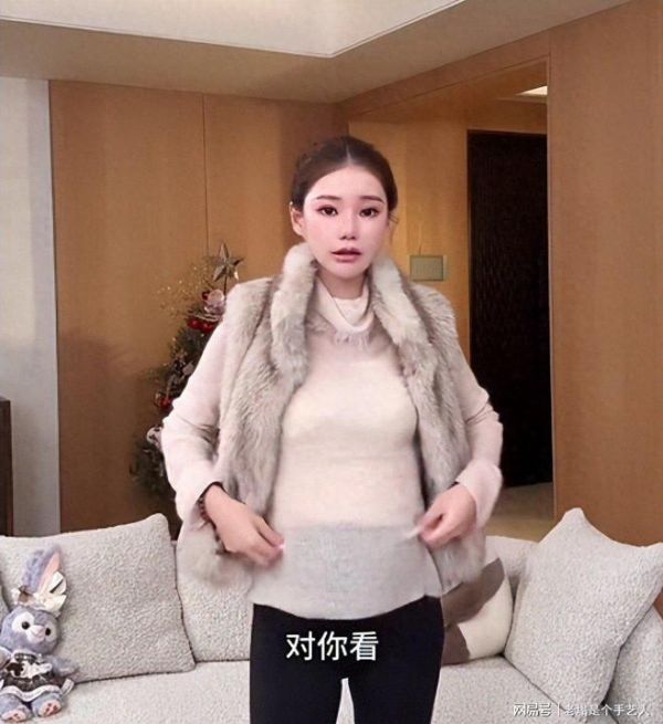 视频中她穿了一件毛茸茸的外套,下身是一条比较修身的裤子,她表示肚子是可以“藏”起来的。
