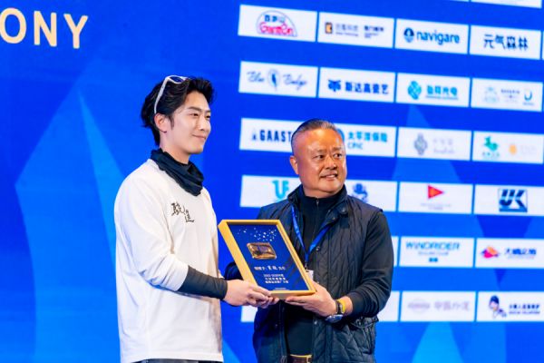 带着上届中国杯帆船赛冠军团队成员的光环,窦骁在2025年12月又一次踏上了中国杯帆船赛的赛场。12月16日晚,在第十七届中国杯帆船赛闭幕颁奖仪式上,窦骁组建的麦檬·骁遥帆船队捧起了博纳多40.7组总冠军奖杯,窦骁实现了“力争卫冕”的诺言。同时窦骁还解锁了官方新身份——获得中国杯帆船赛组委会授予“2025-2026年度中国杯帆船赛航海运动推广大使”,为这项亚洲顶级帆船赛事注入星光活力。