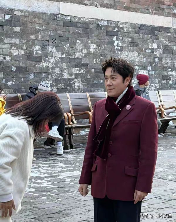 57岁蔡国庆逛故宫被偶遇,一身暗红色西服配质感围巾,身姿板正挺拔,乌黑茂密的头发跟年轻时没差,皮肤紧致得看不出太多皱纹,说三十多岁都毫不违和。跟春妮边走边聊,面对网友合影来者不拒,笑容温柔还主动打招呼,完全没明星架子。