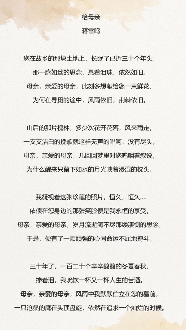 生活的磨砺与岁月的沉淀,皆化作他诗词创作的灵感源泉。其笔下作品饱含对人生的体悟、对生活的热忱,质朴中见真情,偶有诗歌文章刊发于报纸刊物,凭借真挚的情感与鲜活的生活底蕴,获得读者认可。诗词于他而言,是繁忙生活中的精神慰藉,更是记录岁月、抒发心声的重要载体。