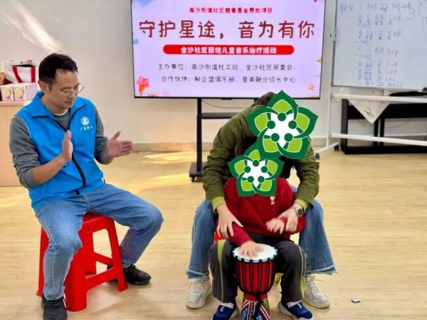 近期,南沙街道社工服务站联合辖内金沙社区居委会开展“守护星途,音为有你”特殊儿童音乐治疗活动。社工与志愿者以非洲鼓为媒介,通过为期两个月的暖心陪伴,助力“星星”儿童敞开心扉、自信成长。
