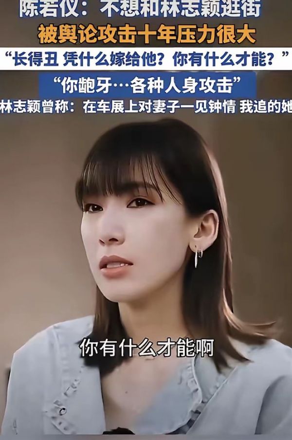 原来,陈若仪和林志颖结婚12年来,承受了很大的压力。不过,这份压力不是来自林志颖,而是来自舆论。陈若仪直言,她因嫁给林志颖,曾遭遇长达十年舆论攻击,被指责“长得丑”“没才能”,各种人身攻击。想起这段经历,她潸然泪下,隔着屏幕都感觉到了她内心的委屈和难过。