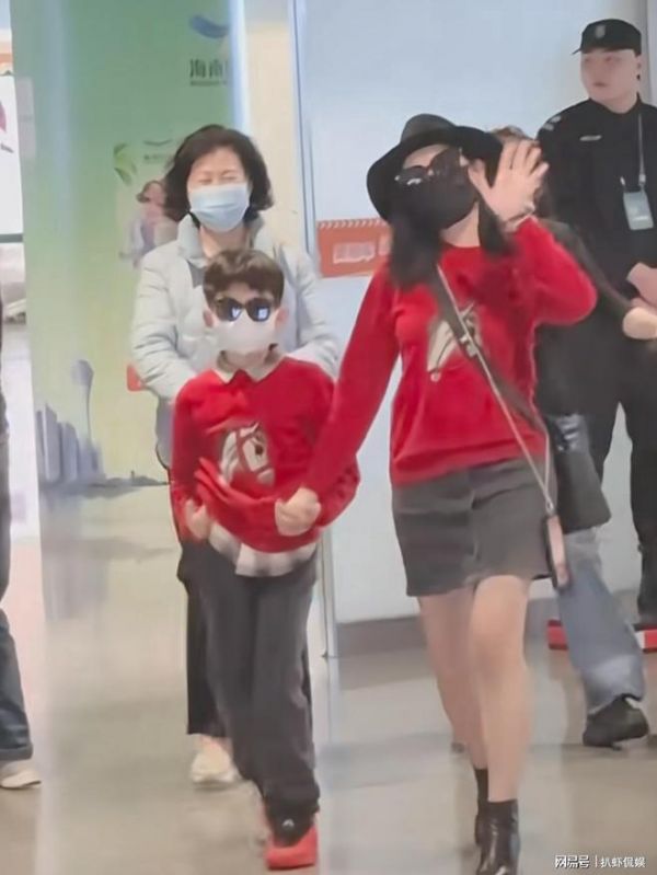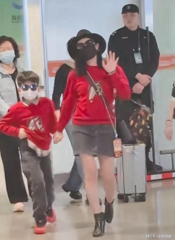 陪在陈妍希身边的是她与陈晓的儿子小星星,小星星穿着和母亲同款的红色卫衣,搭配灰色长裤,脚踩红色运动鞋,造型很是阳光。