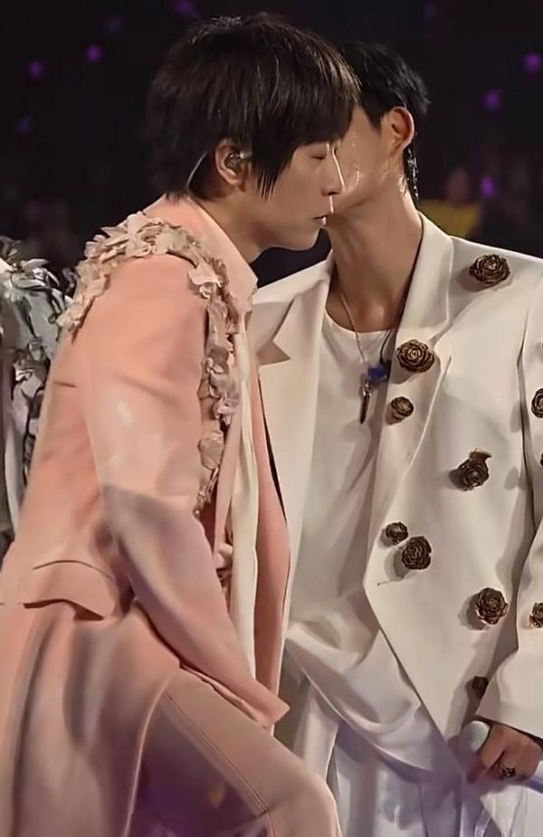 在周渝民和阿信深情对望时,吴建豪突然跑到阿信身边,猝不及防地朝着阿信脸颊狠狠亲了一口,歌迷尖叫连连。
