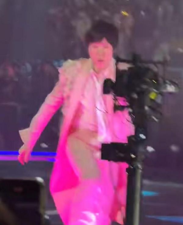 根据媒体公开的画面可见,当时阿信一边唱歌一边朝着前方走,然而他却没有注意到自己已经走到舞台边缘。