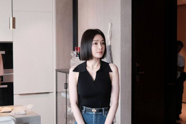 秦岚粉西装配黑丝高跟亮相拍摄现场