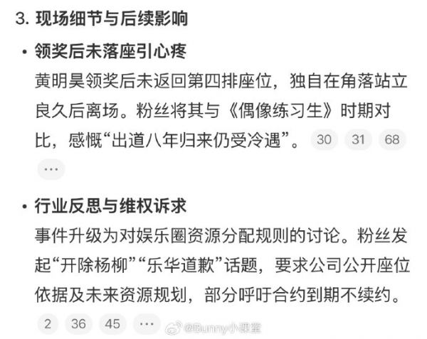 黄明昊星光大赏座位引争议,离席后经沟通返回