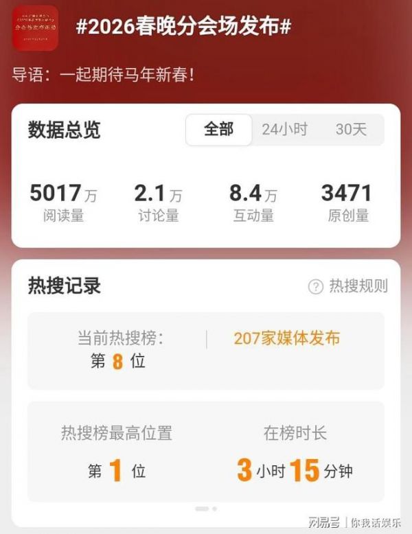 2026年春晚分会场官宣!离春节越来越近了!马年春晚演出阵容备受关注!哪些明星艺人备受期待?从往年春晚的演出经历来看,歌手周深,人气高涨,引发众多观众关注!
