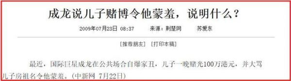2009年,成龙曾自曝家丑,他说房祖名有一晚赌光100万港元。